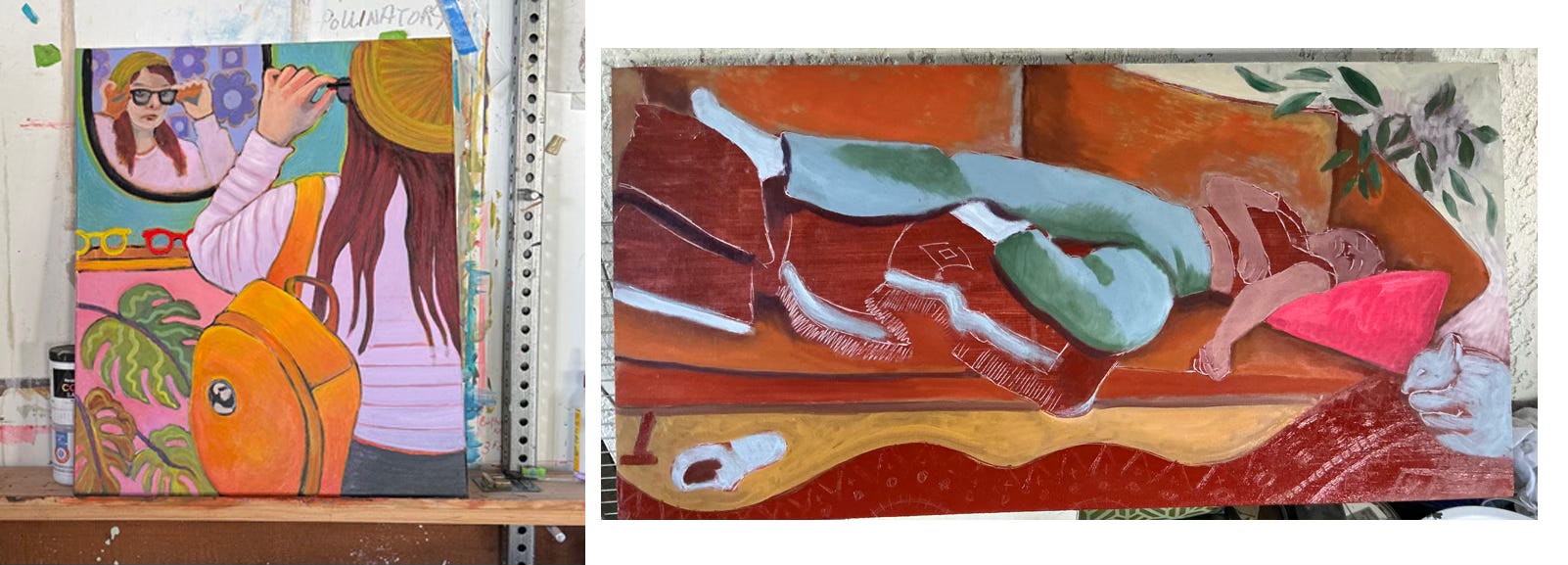 In addition to the open studio, I am also preparing some very new and colorful paintings for an upcoming solo show (here’s sneaks of two WIPs) ~